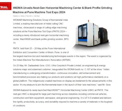 WIDMA Unveils Next-Gen Horizontal Machining Center & Blank Profile Grinding Machine at Pune Machine Tool Expo 2024