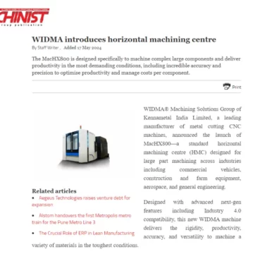 WIDMA launches next-gen horizontal machining centre for Industry 4.0