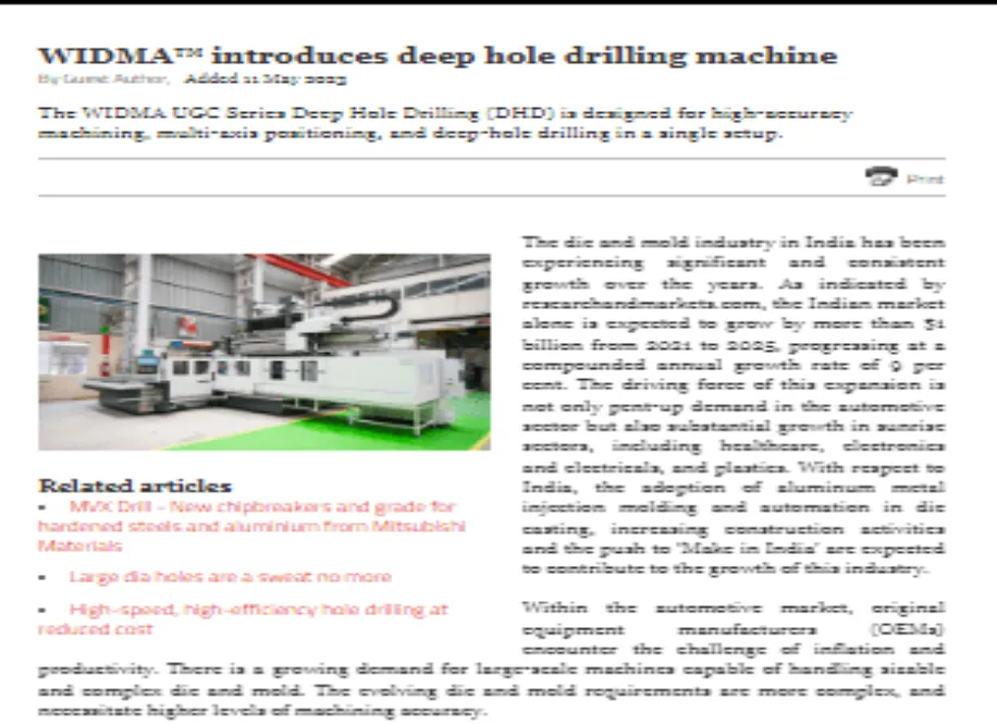 WIDMA’s oil hole drilling machines are the best market solution for oil hole drilling operations.